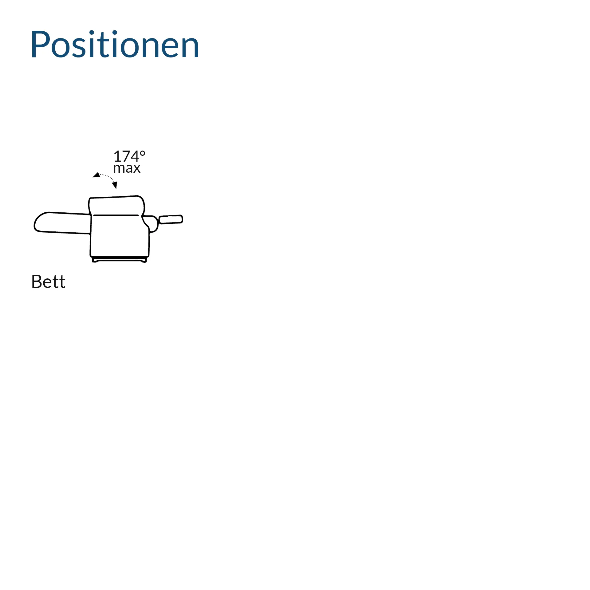 | Max. Neigung der Rückenlehne: | (1 Motor) 145 Grad, (2 Motoren) 174 Grad |